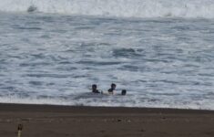 Ombak Besar, 3 Anak Tetap Asik Bermain di Pantai Tengah Jember